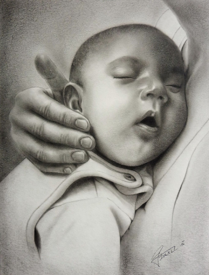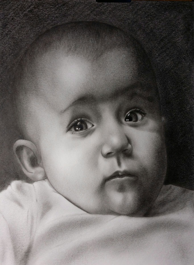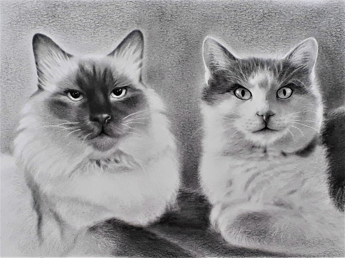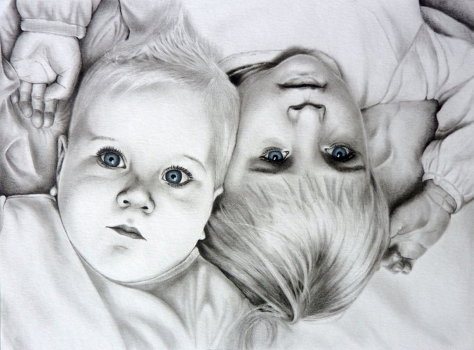 Bilder gezeichnet mit Bleistift / Kohle auf Zeichenpapier